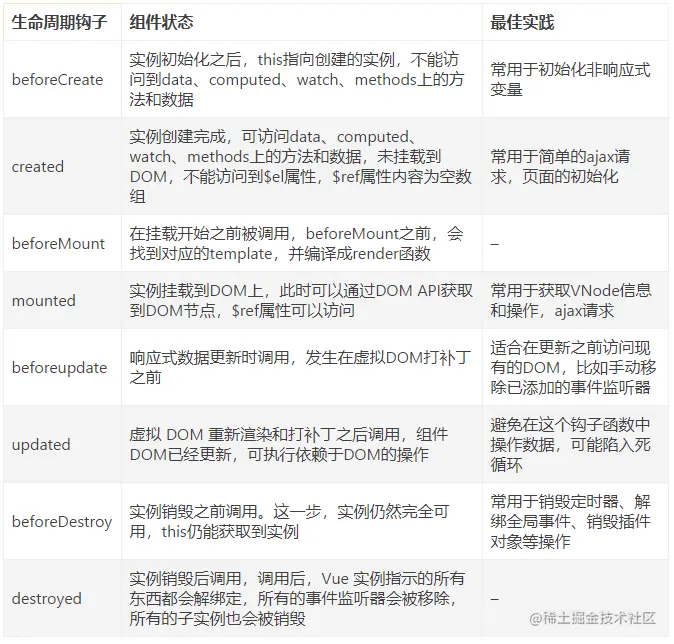 1、Vue的生命周期有哪些,分别有哪些特性?