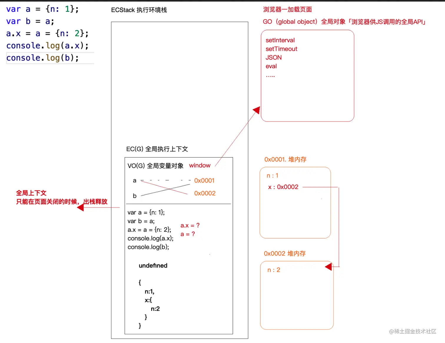 + EC(G)全局执行上下文(只能在浏览器页面关闭的时候释放)
