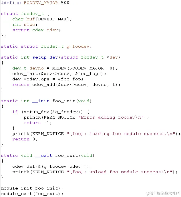 - 创建设备文件 -- sudo mknod /dev/foodev c 500 0