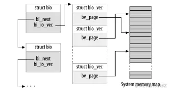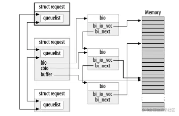 请求队列的每个"请求"(struct request)都包含着一个bio队列,bio结构里面就是设备的寻址(扇区,长度)和对应的内存空间。 “读”请求就是把设备对应的扇区写到相应的内存空间,“写”请求则刚好相反,把内存的数据写入相应的扇区。最简单的驱动就是用一个循环,依次处理各个请求,进行底层的IO读写,如: