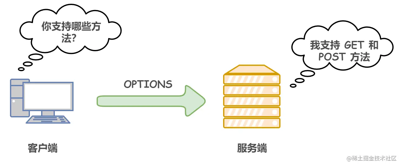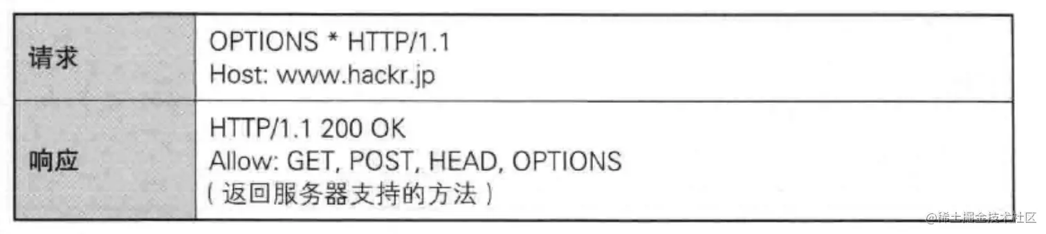 使用 OPTIONS 方法请求-响应的例子:
