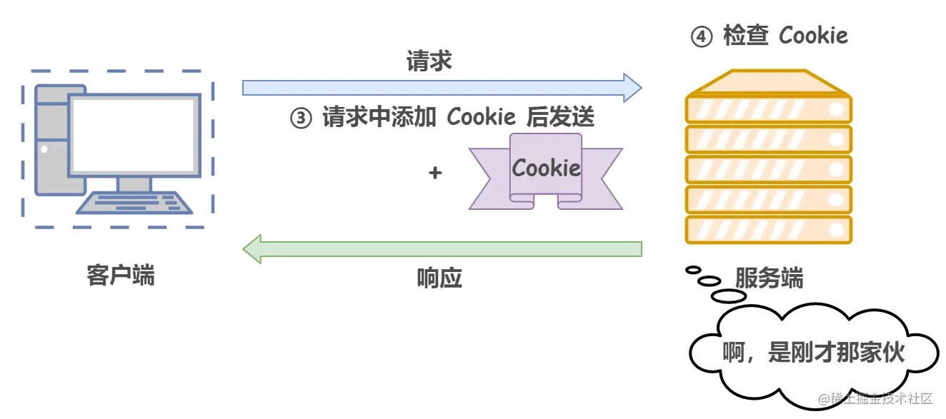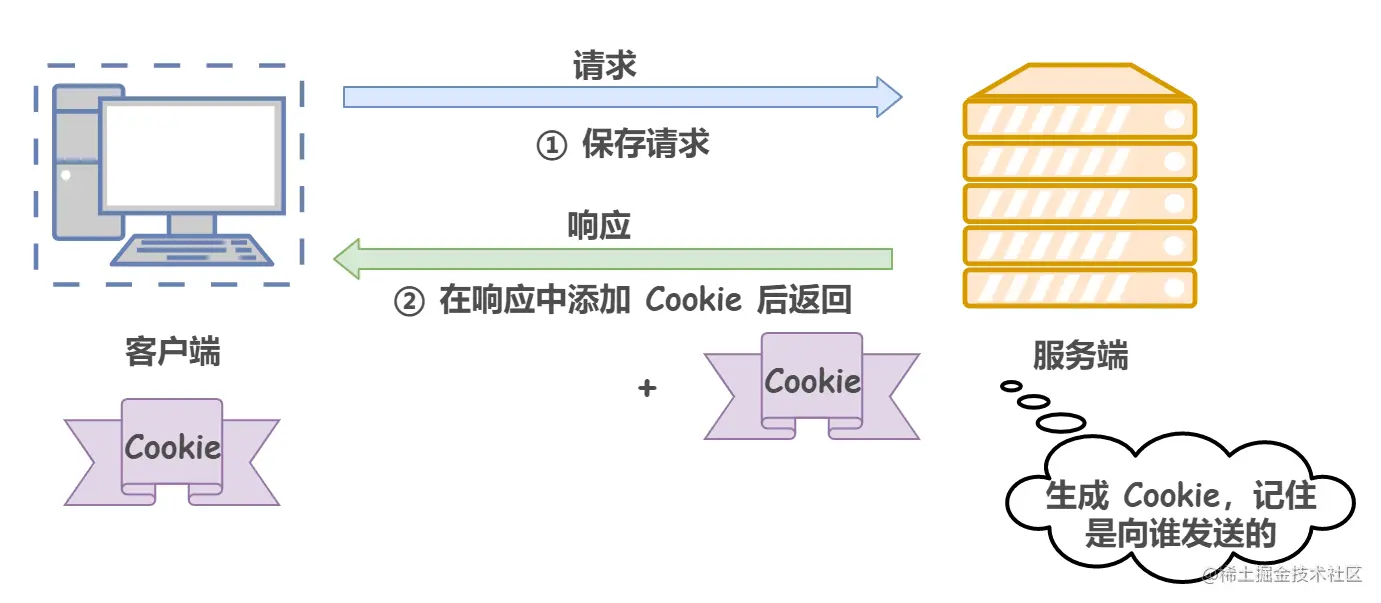 形象来说,在客户端第一次请求后,服务器会下发一个装有客户信息的身份证,后续客户端请求服务器的时候,带上身份证,服务器就能认得了。
