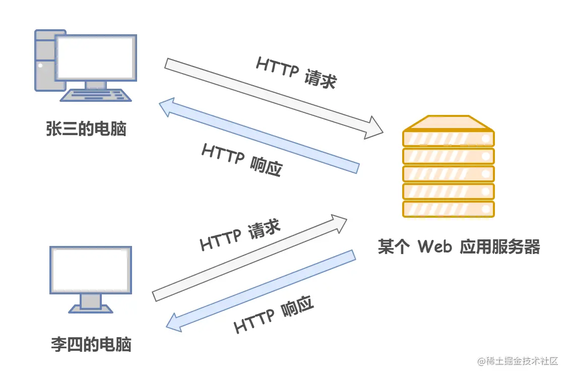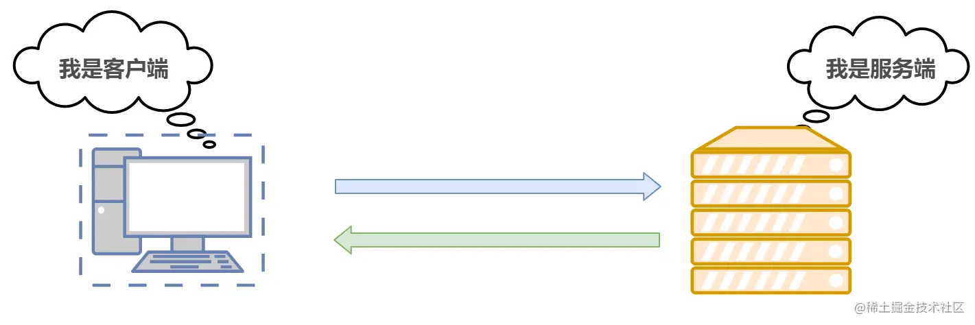 HTTP 协议规定,在两台计算机之间使用 HTTP 协议进行通信时,在一条通信线路上必定有一端是客户端,另一端则是服务端。当在浏览器中输入网址访问某个网站时, 你的浏览器(客户端)会将你的请求封装成一个 HTTP 请求发送给服务器站点,服务器接收到请求后会组织响应数据封装成一个 HTTP 响应返回给浏览器。换句话说,肯定是先从客户端开始建立通信的,服务器端在没有接收到请求之前不会发送响应。