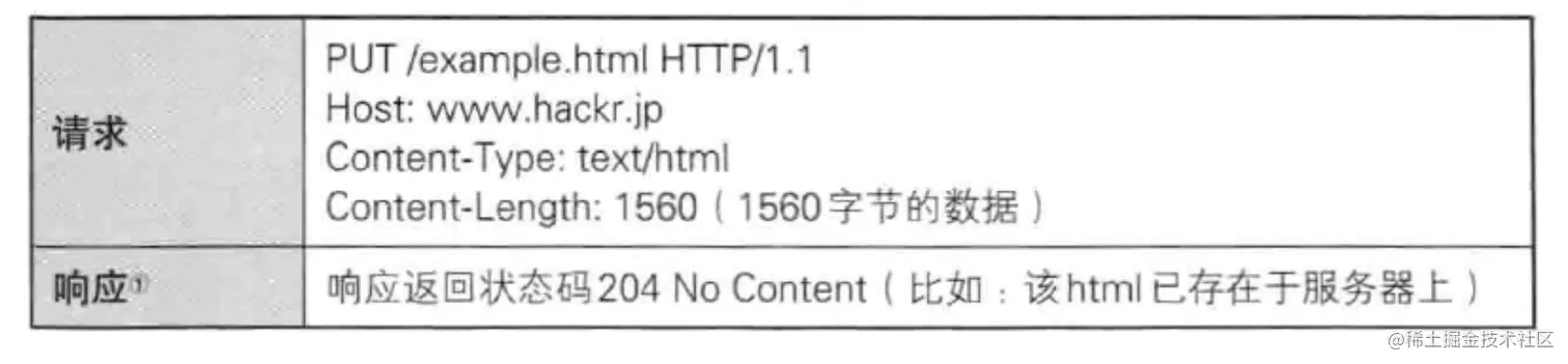 使用 PUT 方法请求-响应的例子: