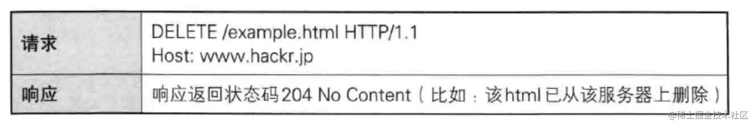 使用 DEELTE 方法请求-响应的例子: