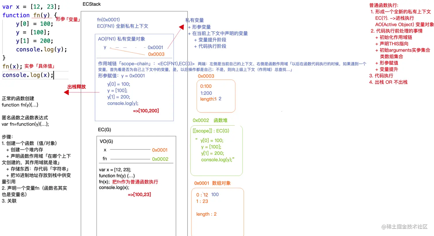 (1)创建一个函数(堆内存)(函数的作用域在创建的时候就形成了;执行的时候形成的是上下文 )