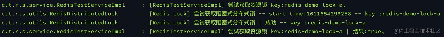 log.info("[Redis Lock] 尝试获取阻塞式分布式锁 | 成功 -- key :{}", key);