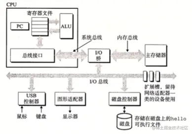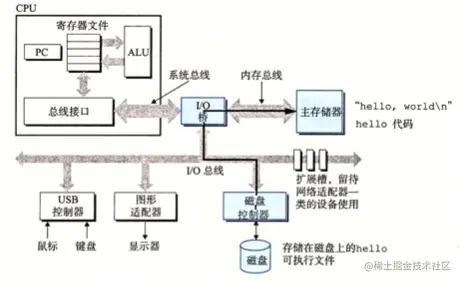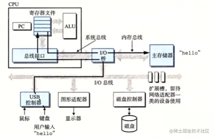将磁盘上的hello可执行目标文件的文件名输入到称为shell的应用程序中。
