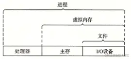 文件是对I/O设备的抽象标识,虚拟内存是对主存和磁盘I/O设备的抽象表示,进程则是对处理器、主存和I/O设备的抽象表示。