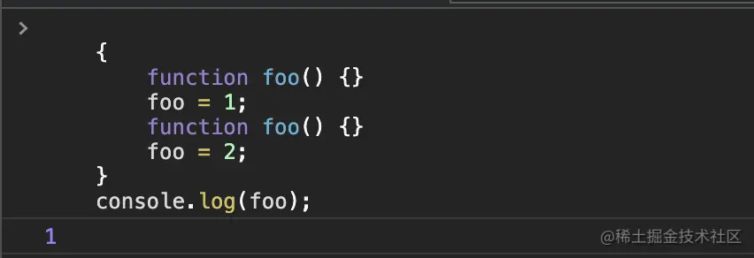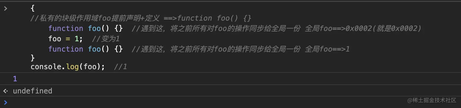 function foo() {} //遇到这,将之前所有对foo的操作同步给全局一份 全局foo==>1