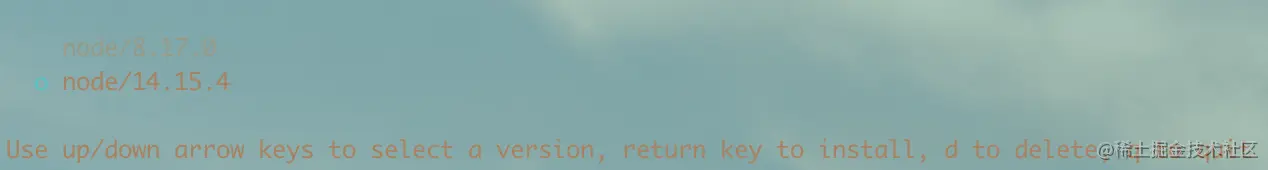 通过sudo n 8.17.0,我们就可以把这个版本的node下载下来了,然后我们在命令行通过n就可以选择不同版本的node了
