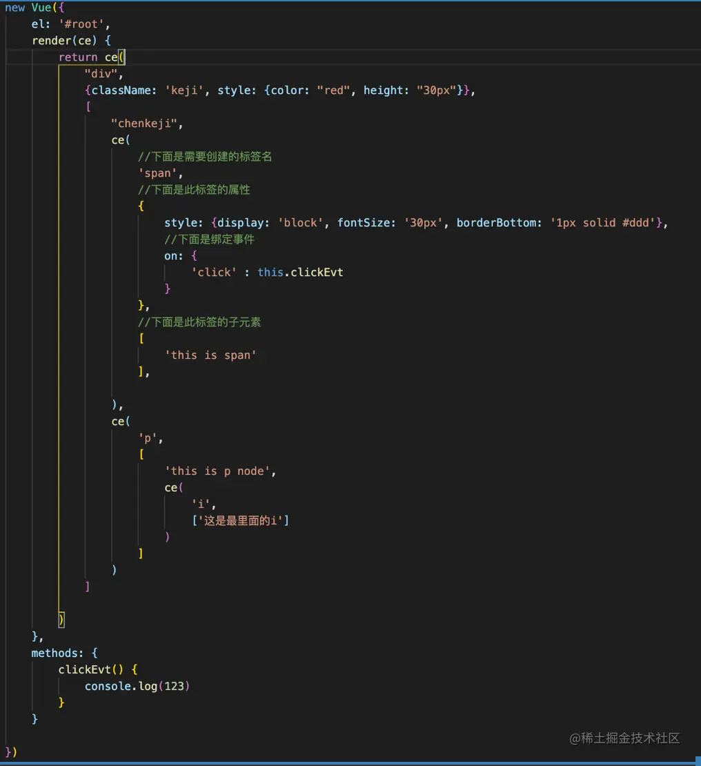 d.在第三个参数里(子元素),可以写标签内的内容,也可以继续调用ce( )方法
