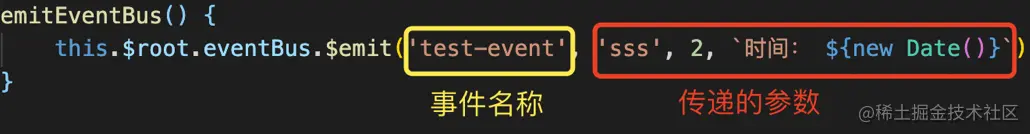 在这个点击事件里面定义另外一个事件,然后在$emit的括号里第一个参数设置事件名称,后面跟上你所以要的传递的参数