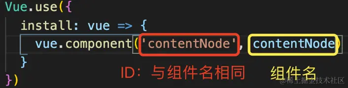 d. 引入完成后,使用Vue.use 来定义插件,传入一个对象,然后里面有install方法