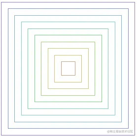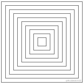 @size: calc(100% - @calc(@index() - 1) * 2%)表示每个子元素宽高的大小(也可以单独设置高宽),@index是个变量,表示当前元素的序号,从 1 - 50,表示没个元素分别为容器的 2% 高宽、4% 高宽一直到 100% 高宽。border: 1px solid #000就是正常的 CSS 代码,里面没有变量,作用于每一个元素