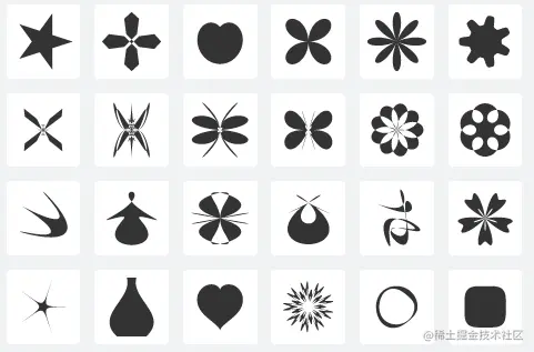 在 CSS-doodle Shapes 中,内置了非常多的 clip-path 图形供我们选择: