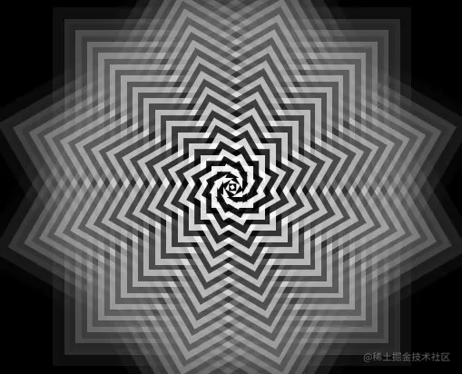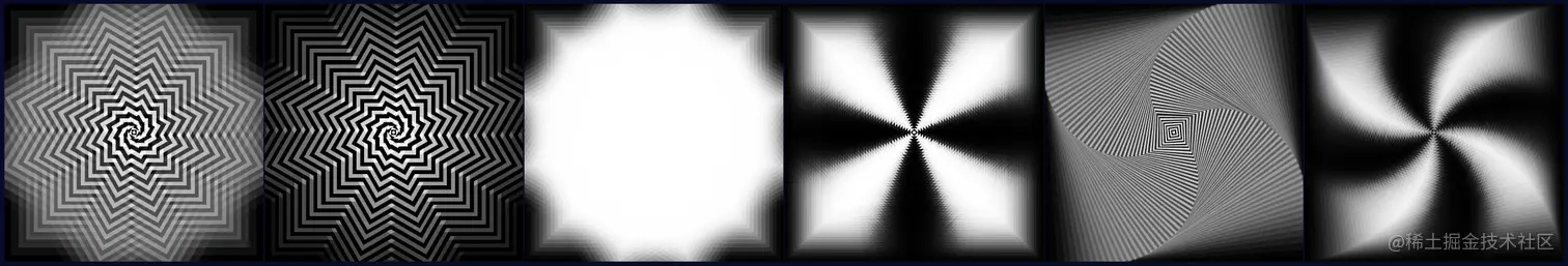 还是一样的思路,我们可以将随机值赋予 transform 的旋转角度,利用黑白叠加,看看再不同角度下,都会有什么效果: