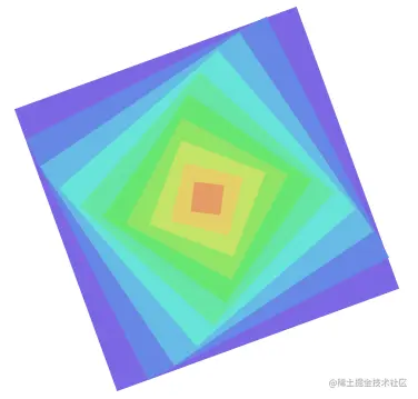 这次没有旋转不同的角度,只是给每一层赋予不同的背景底色,能够得到这样的效果:
