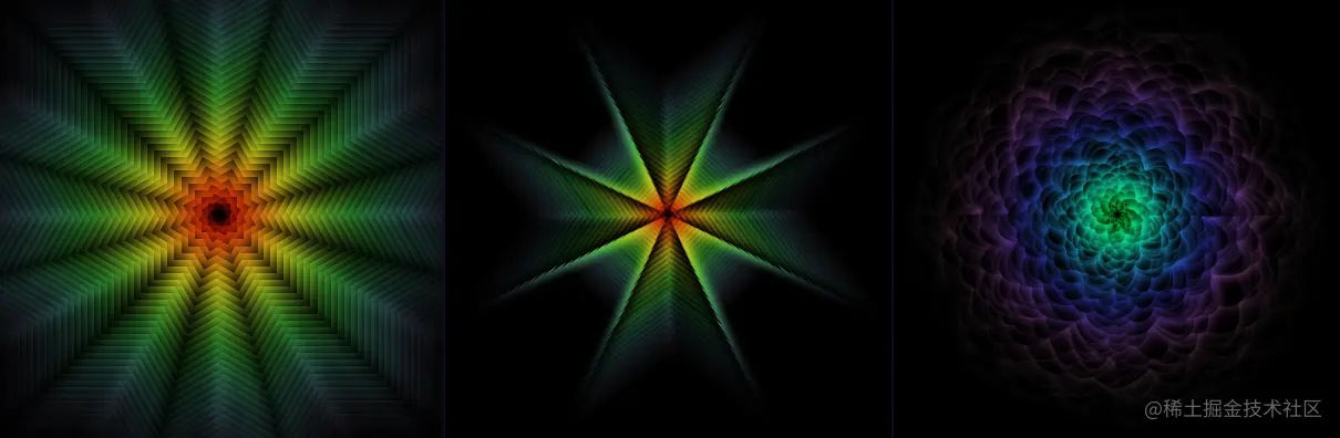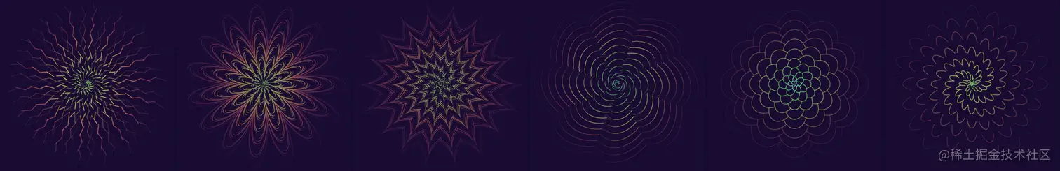 OK,限于篇幅,就不一一展开了,感兴趣可以点进上述 Demo Fork 一份自己尝试。还有非常多有意思的图案等待挖掘生成。