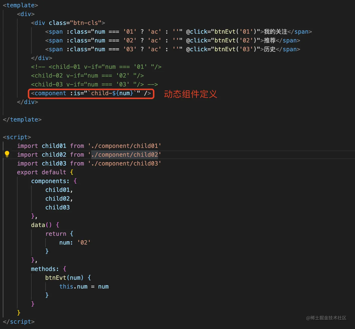 c. component标签中 用 :is 绑定了一个组件,通过 num 这个变量进行控制该显示哪个组件