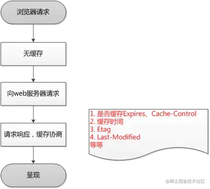 当浏览器第一次发送http请求时,本地通常来说是没有缓存的,因此浏览器需要发送请求到服务器上去获取响应资源。此时浏览器向服务器发送的请求报文中通常会包含Cache-Control来告知服务器本地将对缓存作出何种处理。而服务器收到请求后,会将相关的缓存信息(Etag、Last-Modified等等)连通请求资源一起响应客户端。后续客户端的再次访问的请求报文,将结合缓存资源中的相关缓存字段来做出判断,最后决定使用本地缓存还是服务器再次响应该请求。