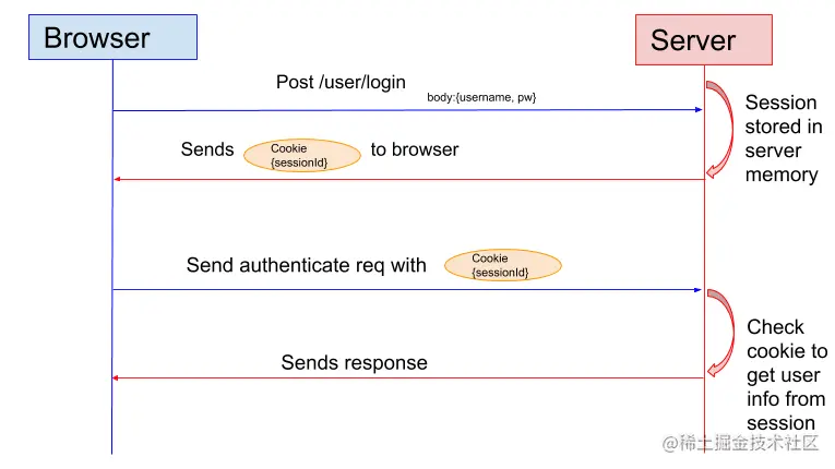 当用户保持登录状态时,在每个后续请求中,cookie都会一起发送,由此,服务器可以利用该会话id校验用户的身份。