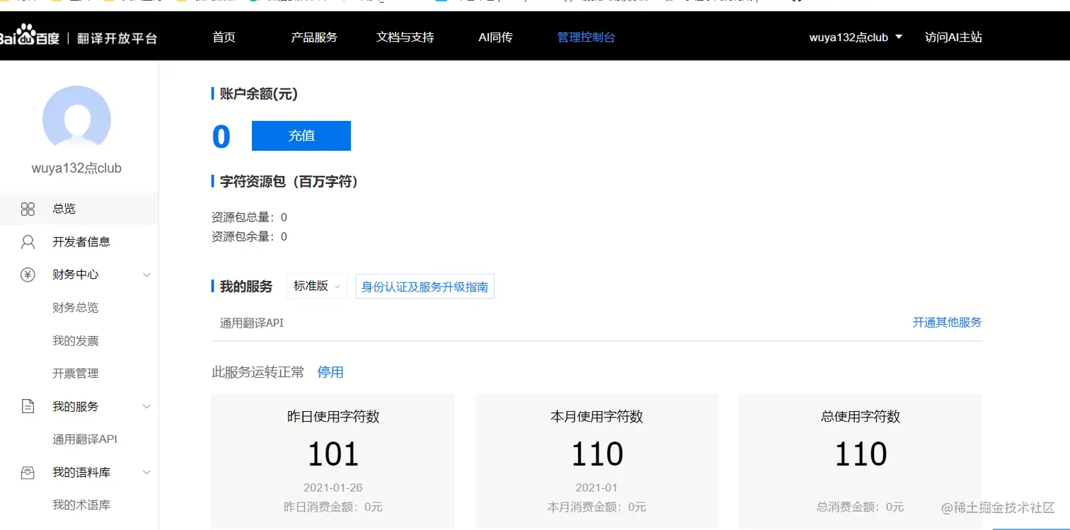 首先在 百度翻译平台 注册,申请一个通用翻译的api,标准版的就够用
