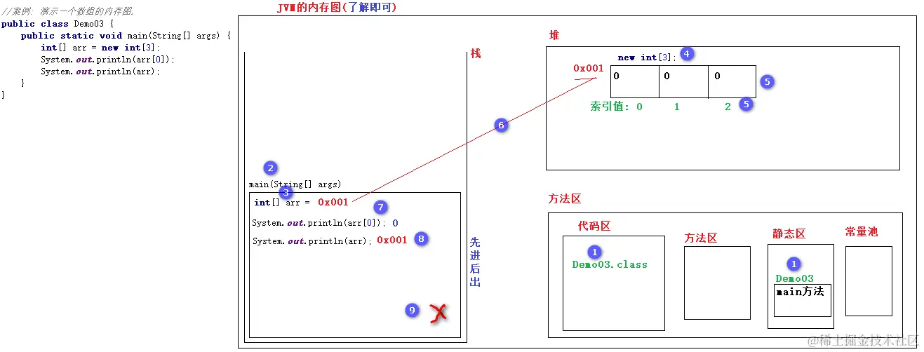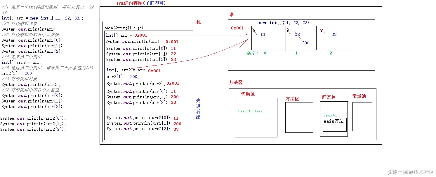 26 int[] arr = {11, 22, 33}; //属于格式1的简化版, 学名叫: 语法糖.