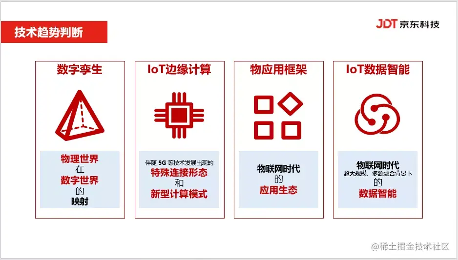 在具体的技术点上,京东科技认为IoT有四个重要的方向: