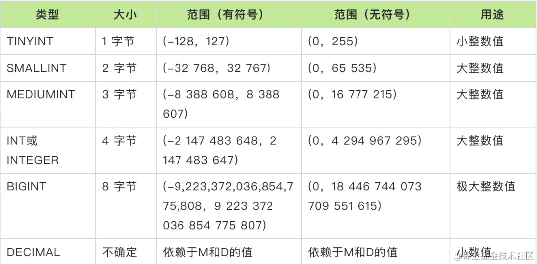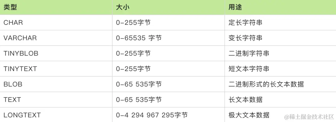 这个问题考察面试者对 MySQL 字段类型的了解程度,可以延伸出很多小问题,例如 char 与 varchar 的区别。