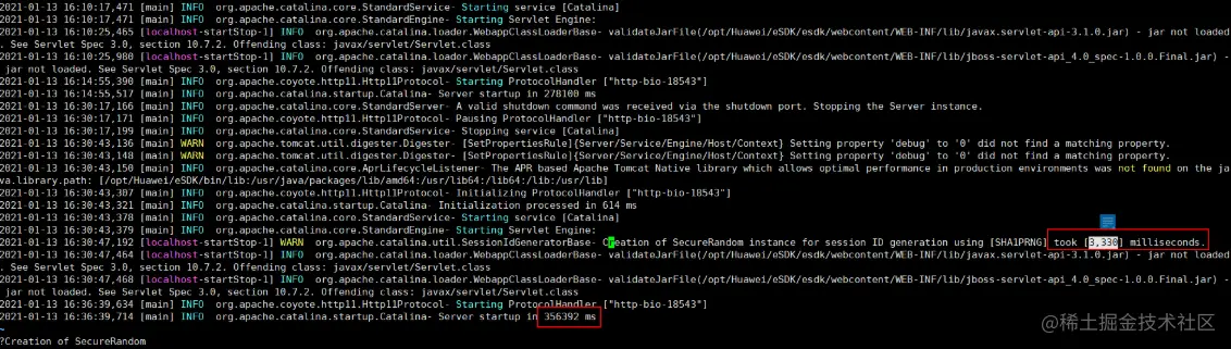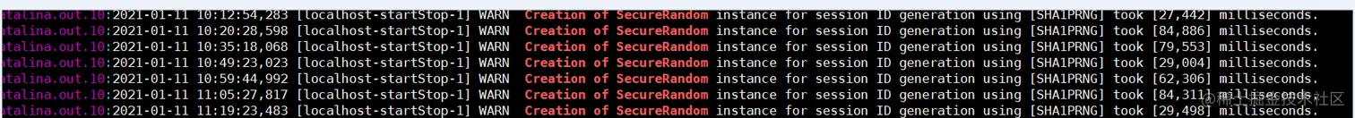 - tomcat日志发现,生成sessionId时间长,继续跟踪sessionId的生成原理,发现使用了系统的随机数方法,google secureRandom初步怀疑为安全随机数问题.