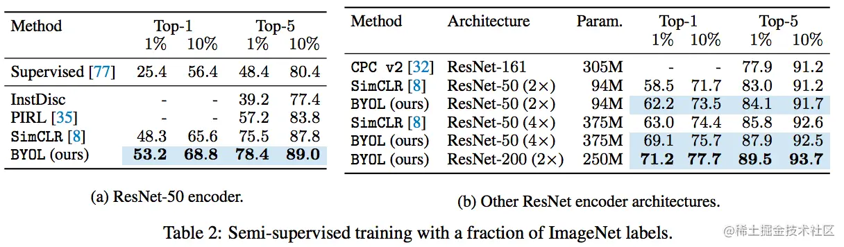 前面同行,这里的监督训练也是获取ImageNet上的少部分数据集进行训练,所以叫做semi-supervised: