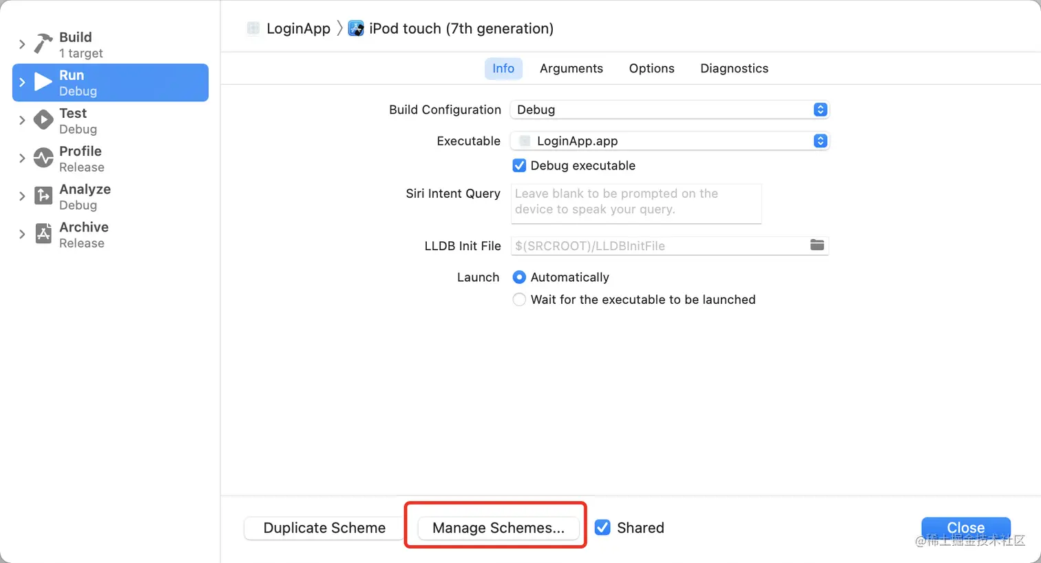 - 这个是在Project中创建的所以对应的地下的全部Target都会变成三个scheme