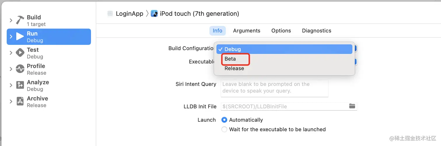 - 把对应的Scheme指向自己编译环境buildConfiguration就可以了