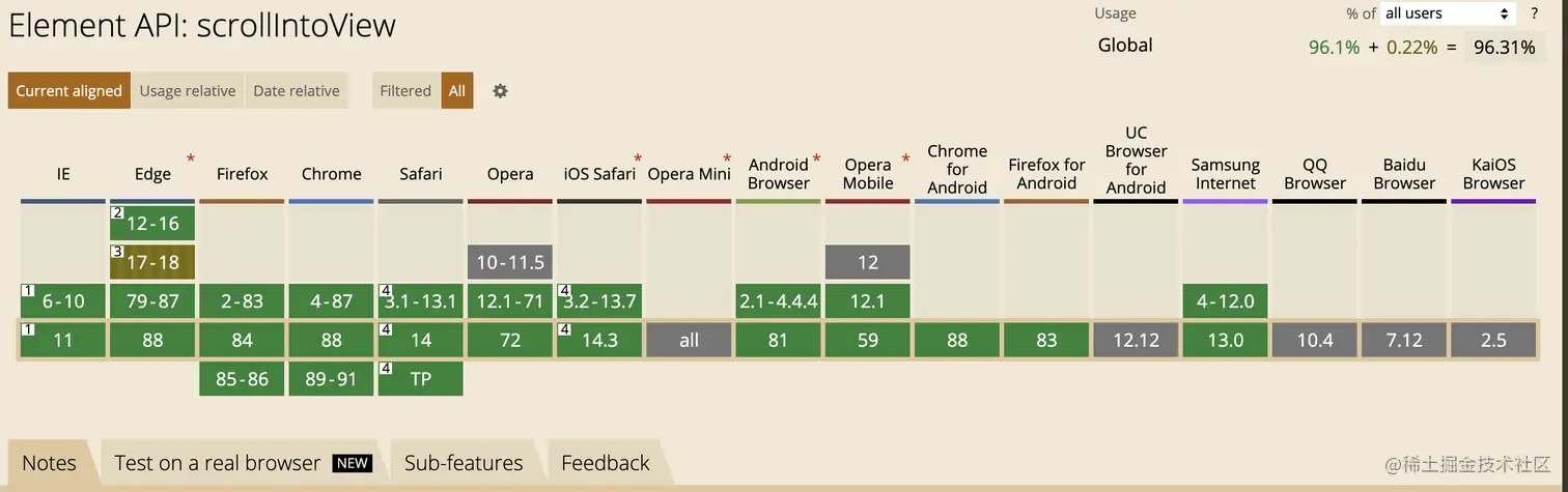 也是浏览器支持的原生jsAPI, 该方法会滚动元素的父容器,