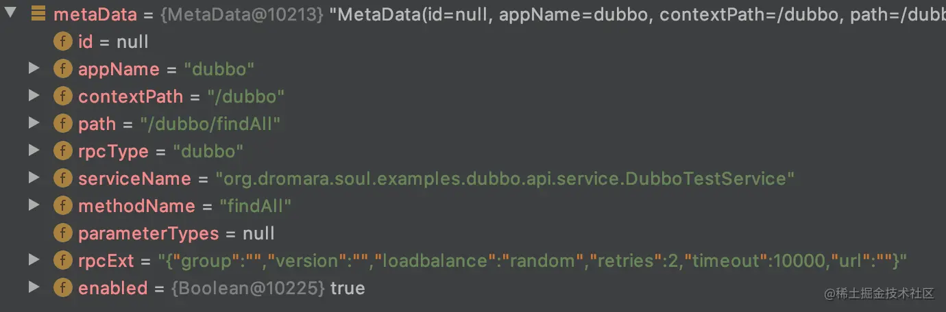 发现代理 Dubbo 服务比代理 Spring Cloud 服务多了一个元数据 metaData