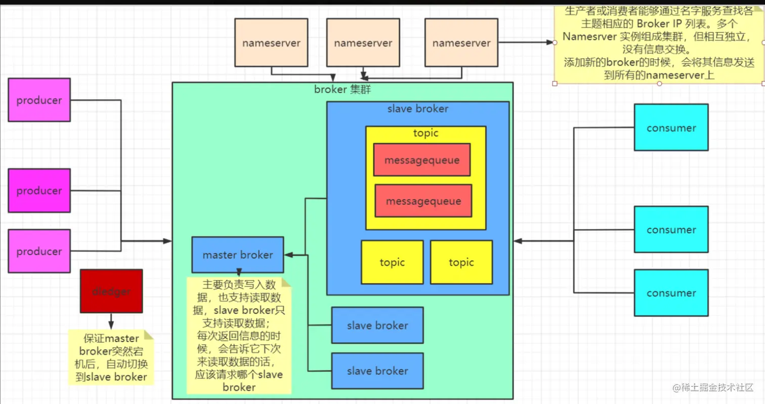 master borker 收到消息之后会同步给slave broker ,保证一个机器宕机之后,另一个机器有数据