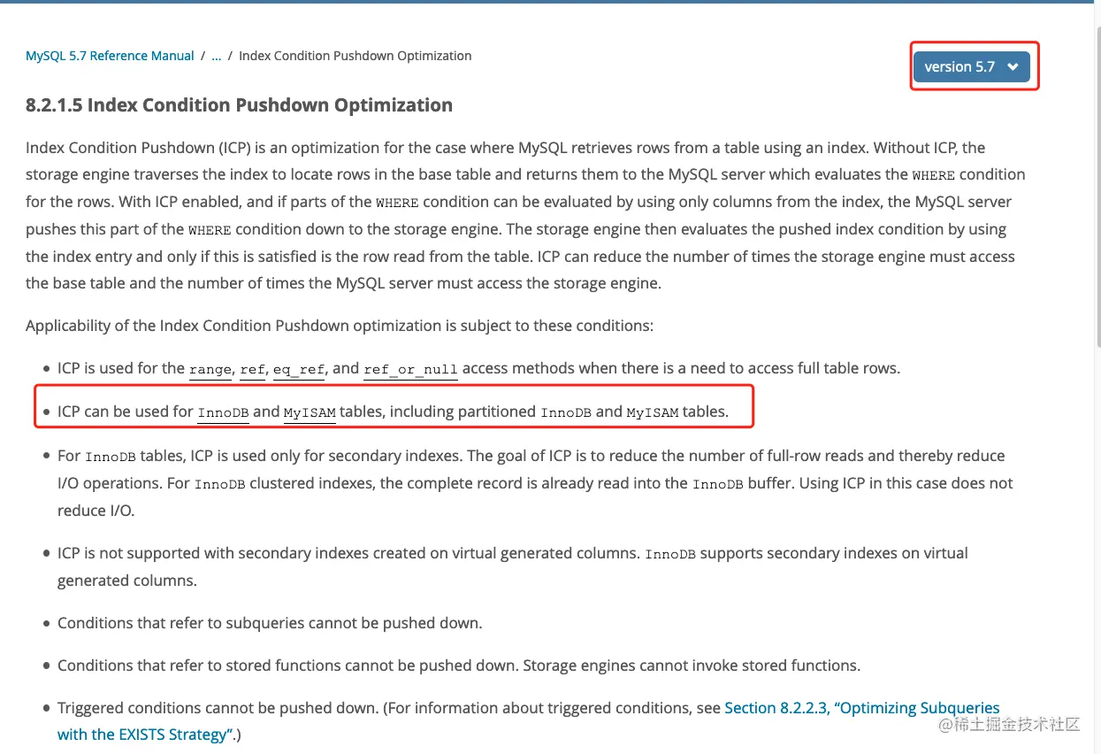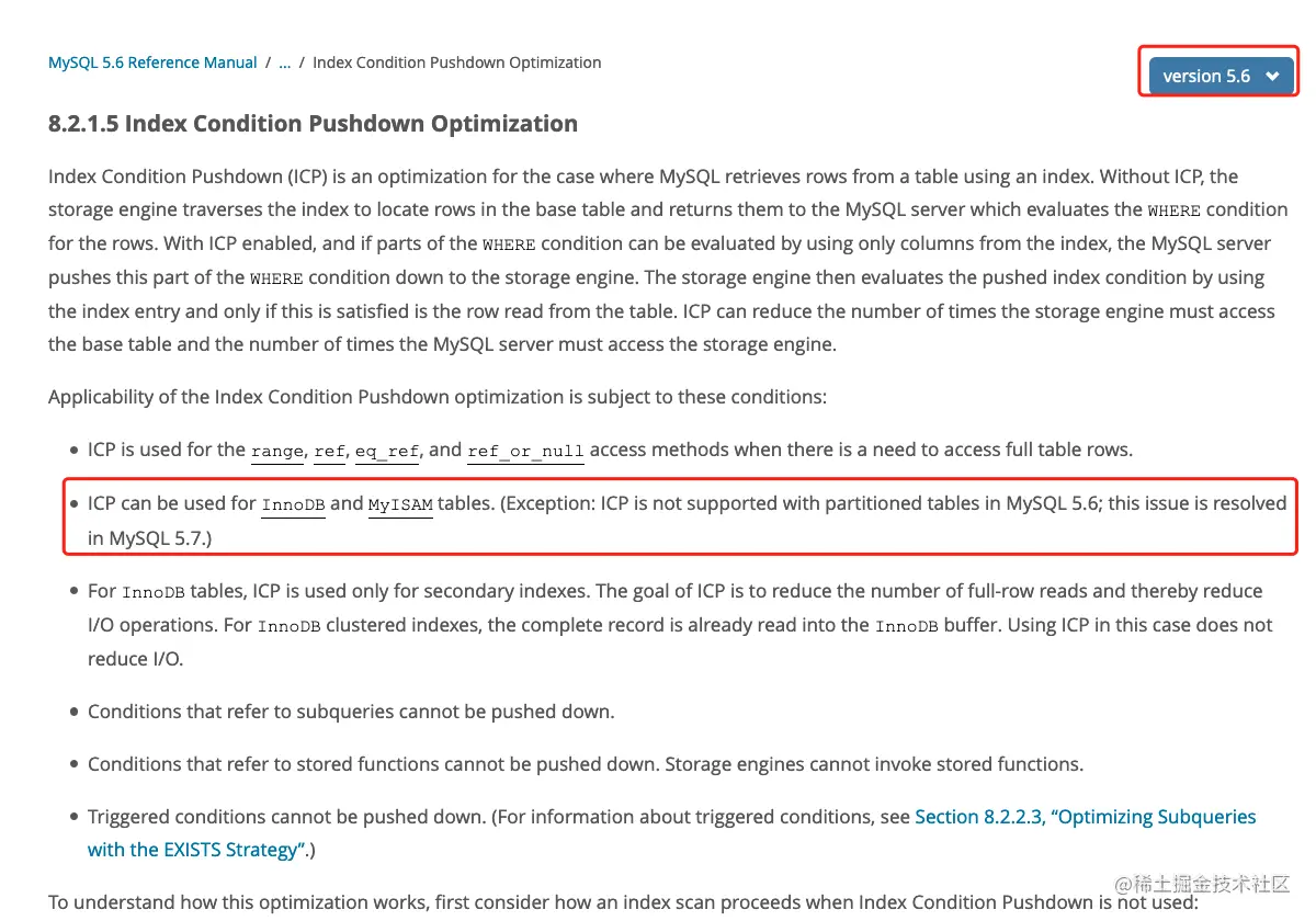 这是MySQL 5.6 关于ICP的页面