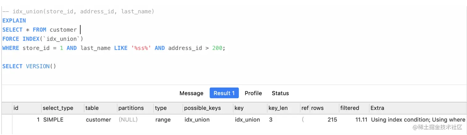 - Extra: 没有Using index condition