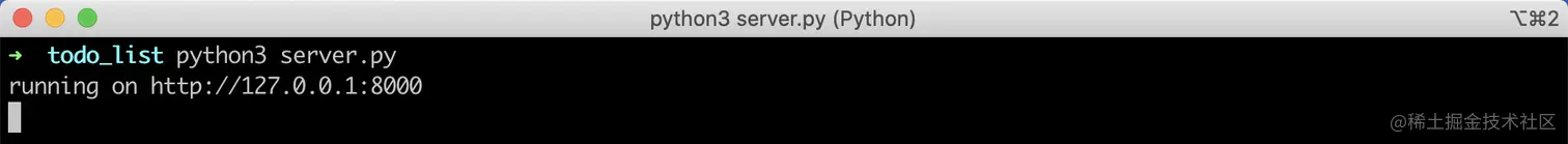 接下来在终端中,进入 todo_list/目录下,使用 Python 运行 server.py 文件,看到如下打印结果说明程序已经正常启动: