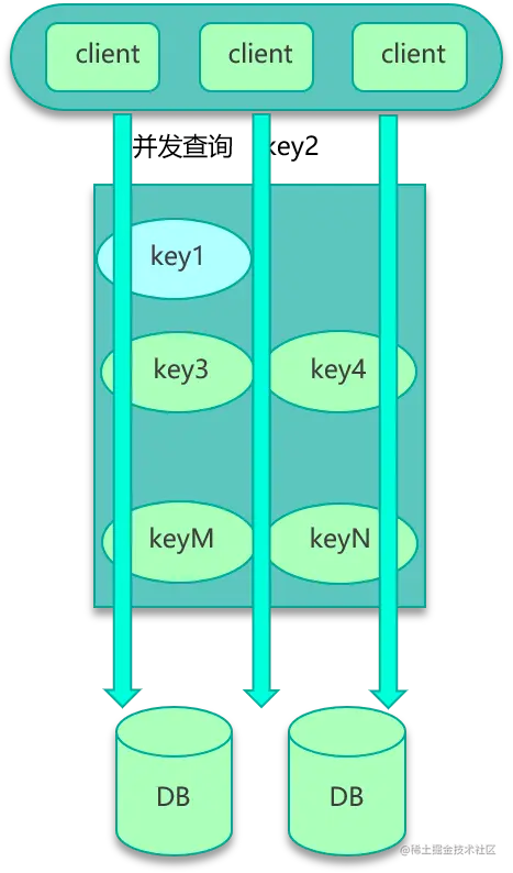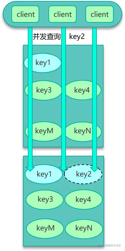 数据并发竞争,是指在高并发访问场景,一旦缓存访问没有找到数据,大量请求就会并发查询 DB,导致 DB 压力大增的现象。 数据并发竞争的原因主要是多个进程/线程中有大量并发请求获取相同的数据,而这个数据 key 因为正好过期、被剔除等各种原因在缓存中不存在,这些进程/线程之间没有任何协调,然后一起并发查询 DB,请求那个相同的 key,最终导致 DB 压力大增。