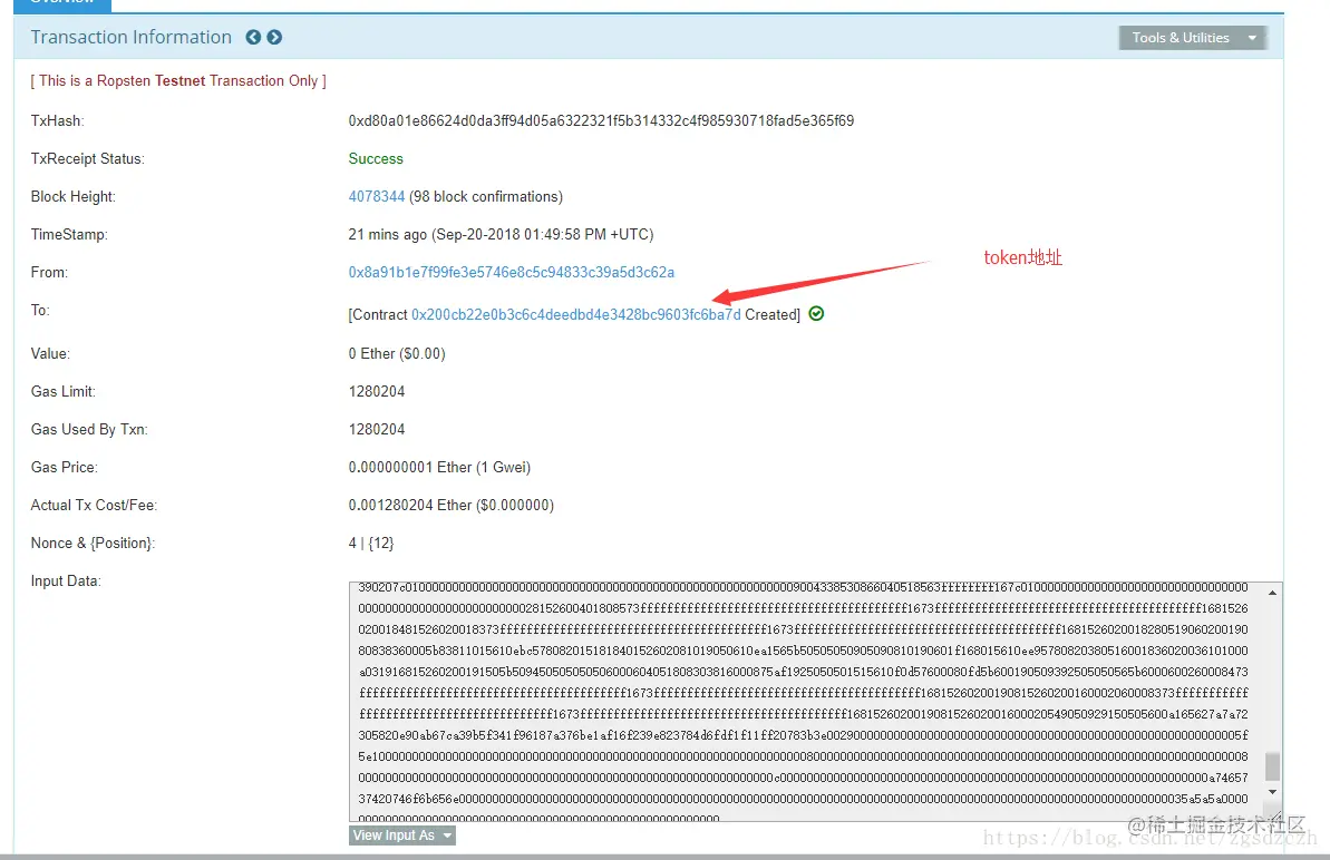 下图则为你的代币地址,然后查看代币的具体信息:地址为: