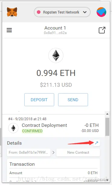 点击“Create”后,就可以看到MetaMask弹出的“CONFIRM TRANSACTION”的页面,这个页面是用来确认发送的,点击“CONFIRM”确认提交。