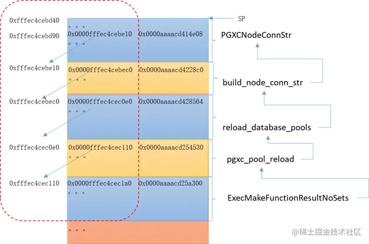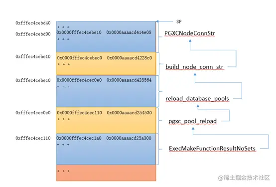 因此就找到了下一级的frame对应的栈顶和上一级的LR返回指令,反解,可以得到函数build_node_conn_str