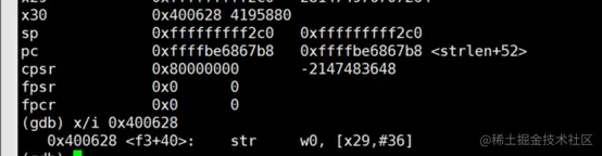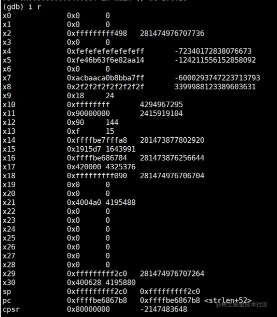先看info register,关注x29、x30、sp、pc四个寄存器的值