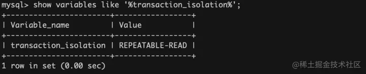 你可以像下面这样看一下你的MySQL默认使用的什么隔离级别: