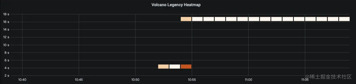 通过Volcano Legency Heatmap 我们可以看到当前Job延时发生的具体情况,在集群被打满的情况下,延时很容易快速达到16秒以上,如果当前集群申请的资源没有满,那么可能是没有配置合理的插件导致的。