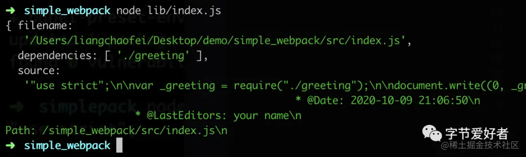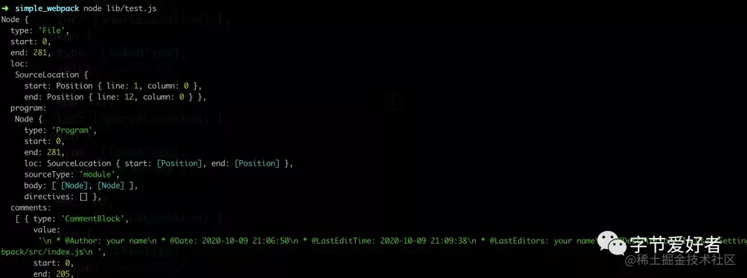 - 执行 node lib/test.js , 可以看到打印出了源码