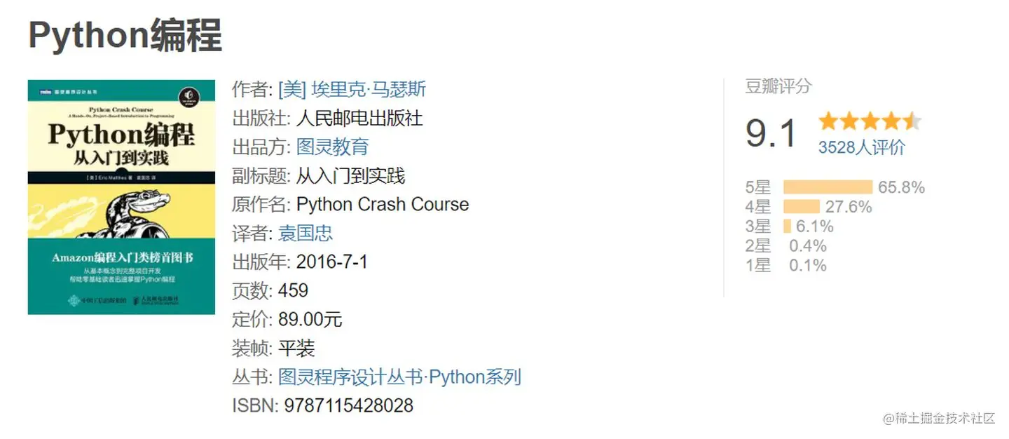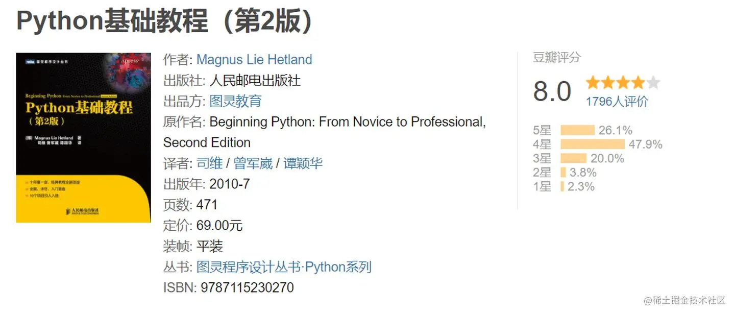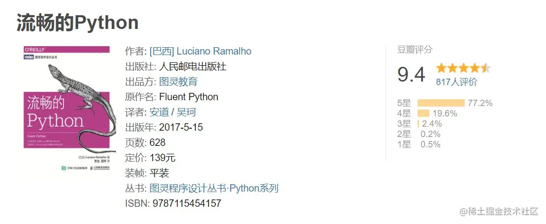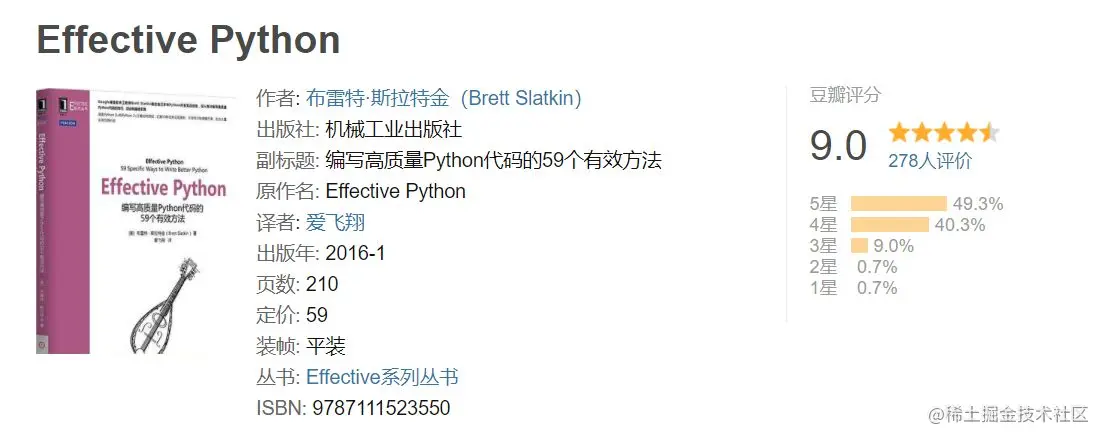 推荐这本书的主要目的,是里面讲解了Python的基本惯用法,可以让你的代码简洁、高效且可读,也就是业内常说的Pythonic,通过这种方式来培养你成为一名熟练的 Python 程序员。