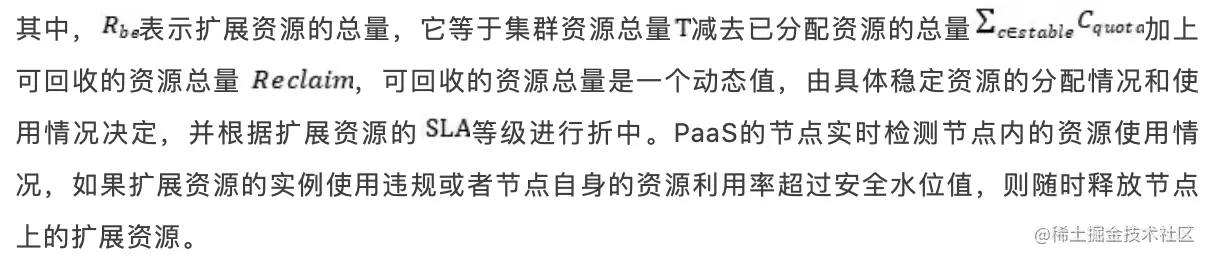 因此,通过监控PaaS集群资源的使用情况,基于历史资源使用数据情况进行预估,形成一个扩展资源池,这个过程可以用如下公示表示: